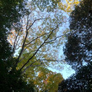【仙台・冬支度】 ~メタセコイア~ メタセコイアがどんどん葉を落としています。 見上げた時、空が見える範囲が広くなりました。 この朝はかなり寒かったのですが、木に触れてみると、温かみを感じました。