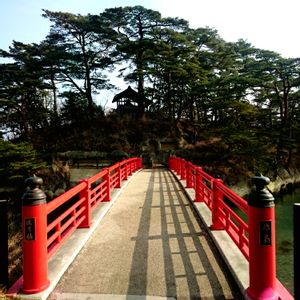 【3.11を前に】 ~日本三景・松島「雄島」に架かる「渡月橋」~ 一昨日、投稿した「雄島」に関してご紹介した、陸から雄島に渡る朱塗りの橋「渡月橋」です。 この橋は、元々、木造でしたが、東日本大震災が発災した時、大津波に襲われ、流されてしまいました。 それでも、二年数か月後までに、コンクリートの橋として再建され、今の姿を見せてくれています。 松島の260余りの島々も、大津波が押し寄せ、斜面崩壊が起こり、松の木が塩害で枯れる被害に遭いました。 しかし その島々が、いわば自然の防波堤となり、大津波の勢いを受け止め、跳ね返して津波全体の勢いを緩めたそうです。 その結果、松島湾の陸側・松島町では、津波浸水高が3メートルほどにとどまり、大津波による被害は、他の地域に比べて小さく済んだそうです。 当時も、観光客が1000人以上訪れていたそうですが、全員無事だったそうです。 日本三景に数えられ、日頃、美しい景観を見せてくれる松島の島々ですが 大津波に対しては、身を挺して防波堤となり、人々を救ってくれたと思いながら松島を眺めると 一段と素敵な島々だと感じます。