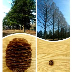 【仙台・散歩】 対照的です! 右側 メタセコイア並木と実 左側 ヒマラヤスギ並木と実(球果) それぞれの実の大きさを比べられるように、床に並べて同じ高さから撮りました。 メタセコイア 落葉樹で、晩秋から、冬、春先までは、主幹と枝だけの姿になります。 ヒマラヤスギ 常緑樹できれいな樹形です。 冬、周りの木が葉を落とした中で、大きなクリスマスツリーのような樹形が目に入ります。 メタセコイアの実 小さな実 写真の実は、長さが約2cmです。 この形のまま落下します。 コロッとして、かわいい! ヒマラヤスギの実 大きい球果 写真の実は、長さが約11.5cm、直径約9cm、円周約27.5cmです。 拾った時、ずっしりと重かったのですが、乾燥させた今でも、100gほどの重さがあります。 通常は、この形で落ちることはありません。写真の球果は、台風の翌日、散歩していた時に見つけたものですが、強風で落ちたのでしょう。 通常、まず、実の上部がまとまって落ちます。これがバラの花のようで、「シダーローズ」と呼ばれます(シダー(Cedar) は、元々はヒマラヤスギ属 の樹木の意味でしたが、 それ以外にも、広い範囲の針葉樹や一部の広葉樹にもcedar の名が付けられています。)。 続いて、シダーローズの下の部分の種子・鱗片が一枚ずつはがれ落ちるように落下します。 枝には、球果の中心を貫いた芯棒だけが残っています。 ヒマラヤスギの木の周りには、実の鱗片がたくさん落ちています。一見すると、葉っぱに見えますが、硬くて、踏むとバリバリと割れる感触がありますので、すぐに分かります。 メタセコイアは、名前ぐらいは前から知っていたと思いますが、仙台に来て、四季折々の美しさを楽しむようになりました。 ヒマラヤスギは、仙台に来て初めて出会い、魅了されました。 どちらも、私のお気に入りの樹木と実です。