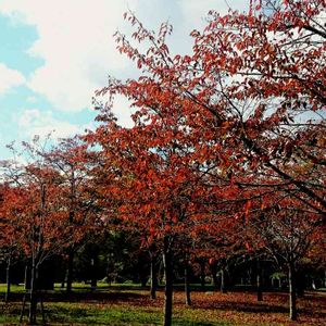 【桜の紅葉】 春、桜のお花見で賑わう公園の 桜もみじ 平日は、いつも、この桜もみじを見ながら、出勤しています。 お昼休み、散歩に出るときも、よく訪れる公園です。