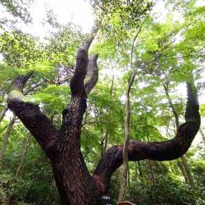 【樹木見上げ隊】 〜アカガシの大樹〜 この幹、枝は、ひたすら光を求めて上へ、上ヘと伸びたという感じがします。 それでいて、斜面に生えて幹が傾いても、枝が広がっても、全体にバランスをうまく保っています。 ここに種が落ちたか、人に植えられたか、いずれにしても、この場所、この環境に順応して、成長し続けてきたのでしょうね。 この木の根は、どう張っているのでしょう。 この木をしっかりと支える根こそが、最も力強いと言えるのではないでしょうか❣