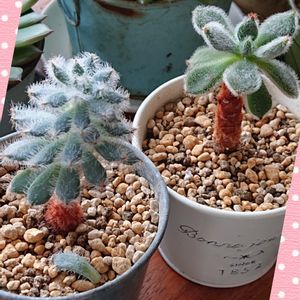 夏に中心の葉がポロポロと取れてしまった青い渚💙復活を願って綺麗な茎の部分で胴切りをしたら…親にそっくりなモケモケちゃん👶が出てきてくれました💕 嬉しいな〜😄🎶