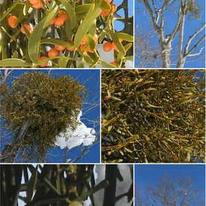 昨日上越のスキー場で見たヤドリギ。 遠くの白い山並みを広く見渡すぶなの樹を明るい黄緑色に飾っていました。 良く見かけるマスカット色の実と異なり、このヤドリギの実は橙色です。 寒さに当たって変色🤔❓と思って調べると稀に橙黄色になるものがあり、アカミヤドリギ と呼ばれるそうです。 ヤドリギの枝や葉は、腰痛や婦人病の薬になるようです。 右下↘️は宿主ブナの殻斗が写っています。