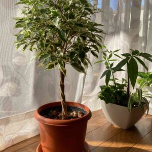 ベンジャミン(*´꒳`*)💓 白い鉢でさわやか☘️ 三つ編みトピアリー仕立ても可愛かったけど、私はこっちのが好みやった✨笑 スターライトかな??🥰