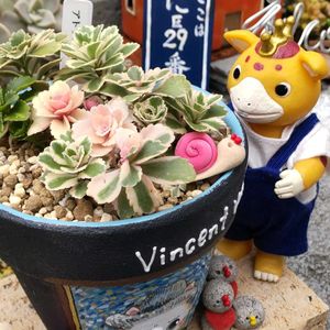 おはようございます🍀 🏷️石の日 🏷️今日のお花 🏷️るる かまぼこ板で繋がる輪 1枚目は、石の日なので、石ころピータンたち。 インスタLIVEでGETしたタニコさんの名画シリーズ、ゴッホのリメ鉢にアトランティスIN。 2枚目は、正面から。 3~5枚目は、お散歩コースのお花たち🤗 今朝もベルに起こされました。 最近は、寝不足が続いています😅 穏やかな週末になりますように🌿