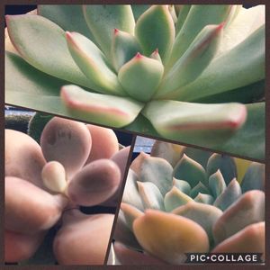 新新入りさんたち、そのに。 交配種はどんな子に育つのかわくわくな子達^ ^ 左からアメジスチヌム×ムーンストーン、コロラータ、ラズベリーアイス×リンゼアナ このグループは「予算内で出会えたら買う!!」って決めてた子達(交配種だけど)♡( ͡° ͜ʖ ͡°) YouTubeでお勉強と言う名の多肉鑑賞してたらエケベリアがいくつか欲しくなりました( ᐛ ) エケベリア、1つくらいは室内で観賞用にいて欲しいけどコロコロの形に惚れた種類だから徒長がこわひー…まよう… とりあえず立派なコロラータは念願のブリキ缶に入ってもらって外の多肉棚に吊るしたい!!