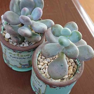 おはようございます🎵月美人さんにアメジスチヌムさん❤️そっくり👀鉢もお揃いにしちゃいました😍ムチムチ、プリプリ大好き✨