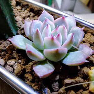 タニ友さんと待ち合わせして、 SALEに参戦…第2段✌ クミチャン、ツキアッテクレテアリガトウ( ˘ ³˘)♥ 年明けのSALEは嬉しい50%OFF 加瀬ナーセリーさんのコーナーから、 以下の6種類の多肉を購入 税込248円が124円也♡(˃͈ દ ˂͈ ༶ ) 1/31まで開催されてますので、 お近くの方は是非💨 【松阪フラワーセンター】さん https://m.facebook.com/matsusaka.flowercenter/ ㊨上から時計回りで🕐 【パキベリア属 パウダー パフ】 Pachyveria 'Powder Puff' 別名 エキゾチカ 和名 霜の朝 【エケベリア属 マローム】 別名 マロム ブラウンオリーブ? Echeveria 'Marrom' Echeveria 'Malome' 【エケベリア属 プリドニス】 Echeveria pulidonis 和名 花うらら 【エケベリア属 パール フォン ニュルンベルグ】 Echeveria 'Perle Von Nurnberg' 【エケベリア属 プレリンゼ】 Echeveria 'Prelinze' 【エケベリア属 ジャシリー】 Echeveria 'Jasiri'