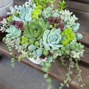多肉寄せ植え☆…☆…☆…☆ お正月の寄せ植えを手直ししたのが、モリモリに🥰 久しぶりの在宅ワーク_φ(・_・ いいお天気なので、多肉を見たり、写真撮ったりしながらのお仕事♪ たまにはいいよね😉