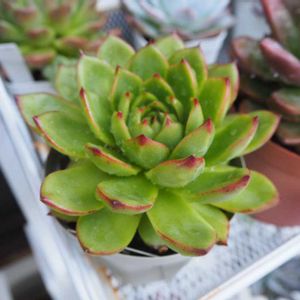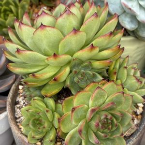 こんにちは😃 朝は寒くて今はポカポカ陽気😅 寒暖差注意ですね〜 赤い爪のブルードラゴン🐉さんと ムーンストーンさんどちらもきれいなお爪してます😍→お一人様にした恋心さんは茎から赤ちゃんいっぱい出してます👶↓ベンバディスさんとルシダムロマンさんどっちも子沢山☺️