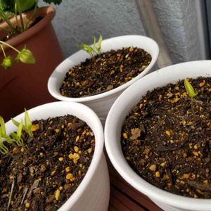 3種類のパプリカ 種まきから 2ヶ月 相変わらず 成長しない⤵ 雨がやんでからの この数日 やっと5mmくらい 伸びたような・・・ 待ちけれなく 買ってしまった苗の方は 元気良く 蕾もでき始めているのに 今年は パプリカに一番期待してたのになぁ
