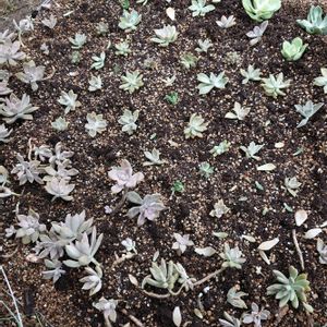 @ぴのパパさんから頂いた 沢山のカットお肉さん達🌱 地植えコーナーの土を リフレッシュして仲間入り🌱 もげた葉は挿して🌱 ありがとうございました。◕‿◕。 大切に増やして行きます🌱