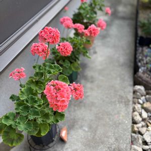 軒下のゼラニウムが満開です✨🤭 本当に可愛い花色。 まんまるく咲いてくれます♪ お隣のペラルゴニウムがもうお花が終わりなので、バトンタッチです。 ペラルゴニウムは、カットして挿し芽もしました。 1️⃣ゼラニウム🩷 2️⃣ペラルゴニウムカット前 3️⃣カット後 4️⃣挿し芽