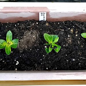 おはようございます(*^^*)🌤️ 久しぶりの朝の青空の下で 新しい命が頑張っています🎶 今日も猛暑ですね💦 水分、塩分補給忘れずに‼︎ ①零れ種のニチニチソウ、白い花でした(*^^*) 他にも6個程芽🌱を見つけたので ピンクも咲いてくれたら嬉しいな🩷 ②自家採取のホウセンカ、スクスク 育ってます🎶 ③零れ種同士、コキアとトレニア 後から出て来たトレニアの勢いが凄い😅 この色のトレニアは何年も前から あらゆる所に出て来て雑草状態です💦可愛いんですけどね💜 ④お友達から頂いた自家採取の ルコウソウ、ゆっくり成長中🌱 涼しげな葉っぱです🌿 ⑤徒長したアメリカンブルーの 挿し芽にお花が…💙 挿し芽の挿し芽です🤭孫ですかね😆