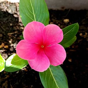 挿し芽のニチニチソウが咲いた🌺🌺💐🎉🤩🔴 6/15に挿し芽をして、約5週間🌼 プランターに植えた3本のうち、今朝第一号が開花🌺 花の大きさはやや小さ目😅 2枚目 他の2本も蕾あり😃
