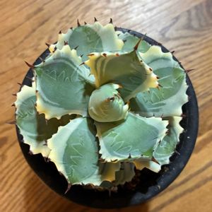 アガベ成長記録📷✨ pic①② ブラックアンドブルー チラッと見える鋸歯が連棘、トップがウネウネ😏 BBは思った形になかなかならない…難しい😓 pic③ 赤猫 縦に伸ばしたくないので水やり頻度少なめ お気に入りの株✨ pic④ フィリグリー 鉢に植えてから1枚展開🌱 pic⑤ 金剛🦍 発根管理中。早く葉が動いてほしい😆 🏷️毎月7日はアガベの日