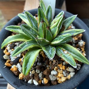 アガベ アメリカーナ 親株から初めて株分けした長男 だいぶ成長しました ウォーターマークも綺麗