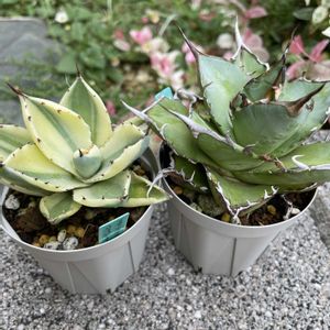 アガベを育てて2年、成長はゆっ〜くりです🪴暑さ寒さにも強いと感じました💪アガベ ハデス、アガベ スナグルトゥース🐶💕🪴🤠🏷️2のつく日は斑入りの日🏷️