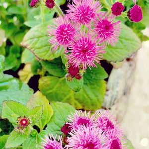 今日のお花『アゲラタム』 うちの子はちょっとレアな赤い子( ¯﹀¯ )♪ 二年前に買った苗の種を蒔いて 昨年実生の子を育てて咲かせました🎶🎶🎶 今年も咲いてもらいま〜す♥️