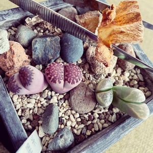 「かんちゃん‥脱皮したね?」 「そうだね、みやちゃん。 これ 脱皮だよね‥」 「学校帰りに毎日見てたけど、とうとうね。感無量‥」 「みやちゃん、観察日記完成した?」 「うん、まあね‥ねえ‥かんちゃん、これ‥ケーキに見えない?」 「まあ‥見えなくもないね」 「‥食べれないかしら‥これ」 「えっ! みやちゃん それ以上太っちゃう気?」 「いやあね かんちゃん それ禁句!」 「かんべんしてよ。おんぶジャンケンする時、どんだけ辛いか!」 「仕方ないでしょ!かんちゃんがジャンケン弱すぎるんだから!🤣 食べちゃおっかな〜😏」 「ダメッ‼︎ これ食べ物じゃないからねッ! まったく‥みやちゃんは〜😩 かわいいゾッ!コノヤロ❣️😍」 〜脱皮したリトープスと昔の学生さん〜