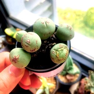 ダイソーのリトープス。 肩まで脱げて、もうすぐ脱皮が完了しそうです😊 先日、GoogleアプリのGoogleレンズでウチにある多肉の名前がちゃんとわかるのかを試してみました。 どの多肉も的外れだったのに、このリトープスを撮ってみたら、なんと、過去のGSに載せたこの子が出てきました❣️ まだこんなに増える前の姿でしたが、ビックリしました😃