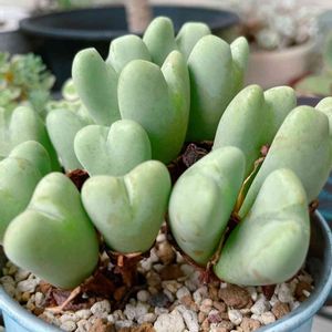 コノフィツム。。。❓ お名前がよく分かりません💧 話しは長くなりますが。。。 昨年、🌵団地さんで20円苗でこの子達を二株購入しました。 がっ!育て方が分からず、適当にお水をあげてほぼ窓際に放置。 少し大きくなりましたが、そのうち一株はシワシワになって枯れてしまいました😢 もう一株も枯れて来てるし、もうダメだろうと諦めかけ、でもまだ緑の部分が残ってるし、取り敢えず放置しておきました。 お水をあげなくても緑の子はそのまま、 他の子も枯れててウンともスンとも言わないので、そのうち忘れていました。。。 最近GSを見ていると、コノフィツムにお水をあげたら、お目覚めしました👀と言う投稿を見るようになりました。 ( ☉_☉)💡ピカン✨ んん??うちにも居た。 うちの子はどうしたかな? 見てみると、ほぼ変わりなし❗️ 恐る恐るお水をあげることに。。。 すると翌日。。。 Σ(ㅇㅁㅇ;;)エッ? 皮が破けてるよ‼️ 「お目覚めしましたーーー😍」とはいかず、ただ驚いてしまい「お、おはよっ」って言っていました。 コレが噂の脱皮すると言うやつですか。 だとすると、初めの一株は枯れたのではなく、もしかしたら夏越しの休眠準備をしていたのかもしれない。 可哀想なことをしました😭 無知の人が育てるのは、植物にとっては過酷でいい迷惑なんだ。と考えさせられました。勿論強い子、弱い子がいるけれど。。。 夏越しが出来なかった子達を思い出し、少し傷心中だった私には、とっても嬉しい出来事でした。 反対に、もっと勉強しないといけないなと思わせてくれる出来事でもありました。 ヾ(_ _*)ハンセイ・・・ 最後まで読んで下さった方、ありがとうございました(💖ᴗ͈ˬᴗ͈)ペコリ。:.゚ஐ⋆*