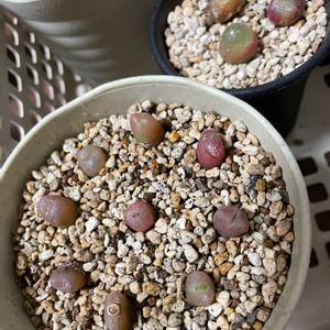 この子も脱ぎ始めて、ピンクの割れ目を魅せて来た❣️😍 Lithops olivaceae var.nebrownii ‘Red olive’ オリバセア変種ネブローニ ‘レッドオリーブ’紅オリーブ玉