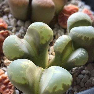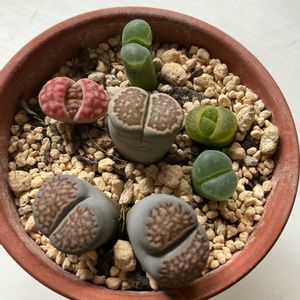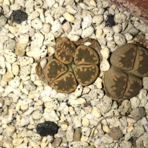 初めて入手したリトープスたちを1つずつ確認していたのですが、これがいわゆる分頭でしょうか?割れ目から頭が4つ見えます😲 緑色の分は脱皮後のようで、既に本体もほぼ分裂しているので、こういう場合は2つに分けたほうが良いのでしょうか?🤔
