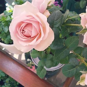 今日のミニバラさん✨ 冬にお迎えしてから、今が1番綺麗に咲いてくれてます🥰 お花もたくさん咲かせられなかったけど、今は何輪も咲いてくれて、色も優しいピンクになったので、良かったあ(*^▽^)ノ