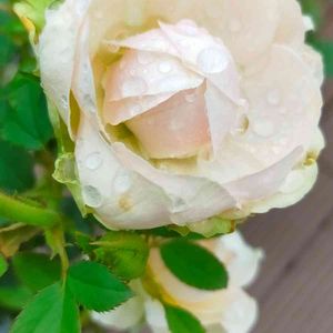 ミニバラ・プリンセスオブインフィニティ なかなか開かなかったつぼみ。 雨に打たれながら咲きました! 最初のつぼみは開きかけて終わってしまったので、ようやく会えてうれしいです♫