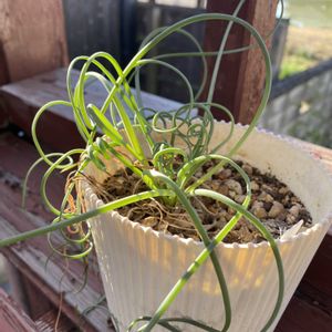 おはようございます。 アルブカフリズルシルズ・スピラリスがお日様に当たるとクルクルシズルになりました🎶 植え替えもせず、肥料もやらず何年も枯れずに育って元気な良い子です💞