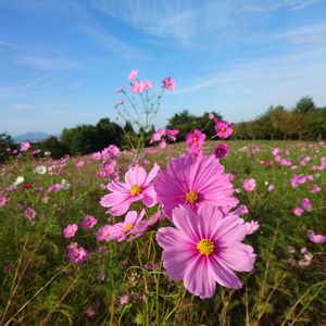 鮮やかで濃いピンクの「秋桜(コスモス)」で、おはようございます🌸☺️ 過日訪れた、水車小屋のある美味しい栃木産・コシヒカリを頂ける瑞穂蔵さんの前庭で、蔵造りの平屋を取り囲むように艶やかに咲いていました🍃🌸🌾🍚🌸🍃 https://mizuhokura-food.com/ "コスモス"は、メキシコの高原地帯原産のキク科の植物🇲🇽 日本には明治時代に伝来して以降、一重から八重咲まで様々な品種改良がなされ、現在では20種以上もの原種に加えて、花色や草丈の異なる数十種もの園芸品種も市場に出回っているようですね❣️ よく見る代表的な園芸品種には、以下のように分かり易い分類がなされていました🌼🔍🍃 ① 花が大きく早咲きで丈夫…センセーション系 ② 筒状のユニークな花弁…シーシェル系 ③ 豪華な花を咲かせる…ダブルクリック系 …都心部も、昨日からようやくカラッとした爽やかな秋の空気感に包まれました🌤️ 心安らぐ「秋分の日」をお過ごし下さいませ✨🌈🕊️🍃 ー花言葉は、「恋の終わり」、「調和」…他。