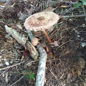 散歩していたらでっかいキノコがありました🍄乾燥気味です 多分カラカサタケだと思います。