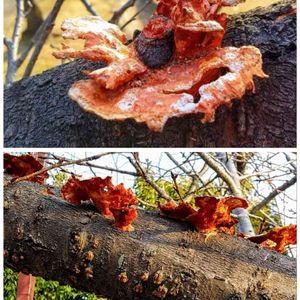 おはようございます😊 いつもありがとうございます💚 いつもの散歩道🚶🚶🚶 朽木に名前はわかりませんが、赤いキノコ?とサルノコシカケのようなもの😅 2021.5.14 📷