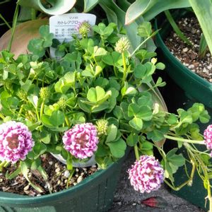 カトレアクローバー🍀 おはようございます🌞 スズメの声に朝陽を浴びたピンクのクローバーが綺麗です。