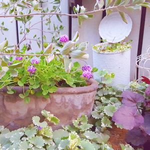先日お迎えしたカトレアクローバーஐ೨ レウコフィラムさんの株元、 グレコマ畑にいらっしゃいませ~(*ˊᵕˋ*)੭ ピンクのまんまるお花が良いお仕事してるでしょ♬.*゚ 夏になったら日陰ガーデンへ移動させるかもですが しばらくはここに住んでもらいましょう ( ◦`꒳´◦ ).﹢✧