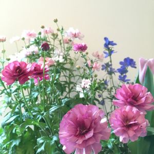 終わりかけのラナンキュラスたちをみんな集めて空き瓶に☺ 一つ一つの花はちょっと小振りになったけど、やっぱり可愛い♡(*´艸`*) グリーンとは関係ないですが… ⚾カープ10連勝ですって…!? わーい🙌今のうちに喜んどこっと(笑)💃💃💃