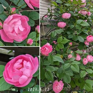 玄関脇のフェンス~今年も、ローブリッターが咲きました‥💗🌿 一季咲き~コロンとした花姿に一目惚れして購入したのが10数年前…古株になって、少し心配な枝が出てきました‥😥