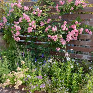 コロコロした花がめちゃくちゃ可愛い つるバラのローブリッター💕 半日陰で咲いてくれてます😊