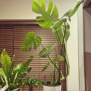 GreenSnapでお買い物したモンステラ。横から見るとこんなに成長していました。早めに大きめの鉢に植え替えをしようと思います。
