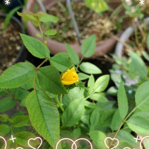💛ミニ薔薇♪💛 暑い暑〜いベランダの僅かな日陰で、隠れんぼしてる様なミニバラの蕾を発見しました✨✨✨🥹💘 何度か枯れそうになりながらも命を繋ぎ、草丈30㎝位に生長しています🥰🎶 約1㎝程のちっちゃな蕾から、元気パワーを感じています💛 後方に🧡か❤️の蕾も見えます✨ 皆さんへ元気パワーが届きます様に🤗💝🎶 (🤳の後、日陰に戻しました😉) 🏷️日曜ビタミンカラー♪ 🏷️ちっちゃいものクラブ 🏷️つぼみに魅せられて 🏷️幸せの黄色いお花 に参加させてください