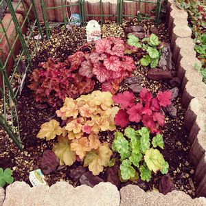 こんにちは😊☁️🌂 クレマチスの株元が寂しかったので ヒューケラコーナーにしてみました🌱