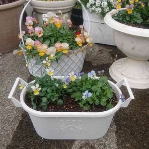 こんにちは😊☁️ コメリで小さいビオラを見つけました💙 寄せ植えに使ったらいいんだろうけどセンスないのでビオラだけで植え付けました