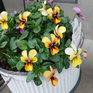 おはようございます😊☀️ ビオラとアリッサムの寄せ植え💜💛💜💛