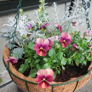 こんにちは😊⛅🌀🌂 風が強くて寒~い日です🥶 渋い色の二種類のビオラ💜