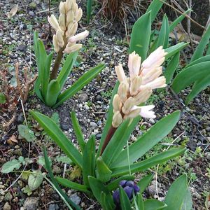おはようございます😊☁️ 植えっぱなしヒヤシンス 一番右側のヒヤシンスは普段カレックスに覆い被されています😅 周りは全体的に茶色で寂しいなぁ🥺