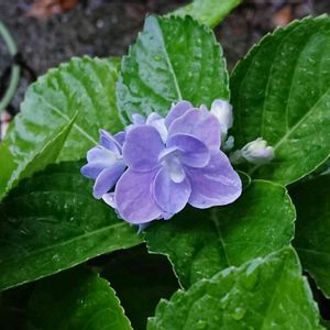 おはようございます😊☀️ 久しぶりに晴れています🎵 剪定してから花が咲いたアジサイ 紫色になってる💜 挿し木にしたのが上手く根付いたら、アジサイ用の土でピンクとブルーになるように植え替えてみようかな💙💗