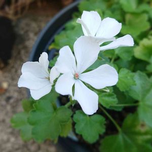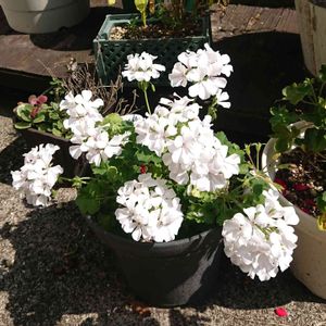 おはようございます😊☀️💦 また暑さが戻ってきました😰 ゼラニウム 主人が安くなってたよーと買ってきてくれたもの 赤、白、ピンクの3ポット 白い花が咲きました😍 赤も蕾が見えてきました❤️ ピンクは買ってきた時から怪しかった、案の定根腐れしてたみたい😱 本当はピンクが一番欲しかった😂