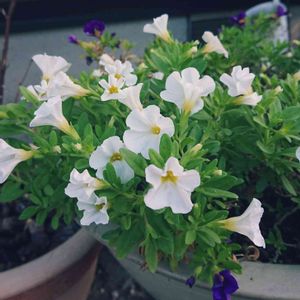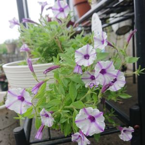 おはようございます😊🌂 台風の影響か風が吹いています🌀 スーパーチュニア ブルースター 徒長しています➰