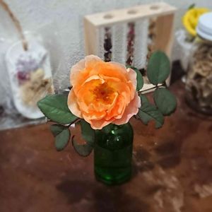 おはようございます😊⛅ 昨夕、風にすんごい揺れていたのでカットしました✂️ 蕾だったのに今朝はこのとおり💛 アロマオイルの入っていた瓶に入れてみました🥀